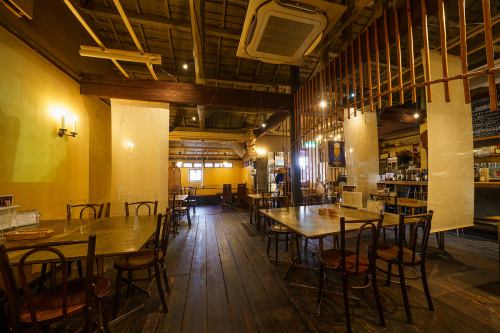 【隠れ家の魅力】奈良の大和西大寺駅から徒歩3分、大通りから一本路地に入った場所にあるのが、多国籍料理「パオルーツ」。三軒長屋をリノベーションした空間は、隠れ家の落ち着きと開放的な広さが特徴。店内に入ると、温かみのある雰囲気で皆様をお迎えいたします。